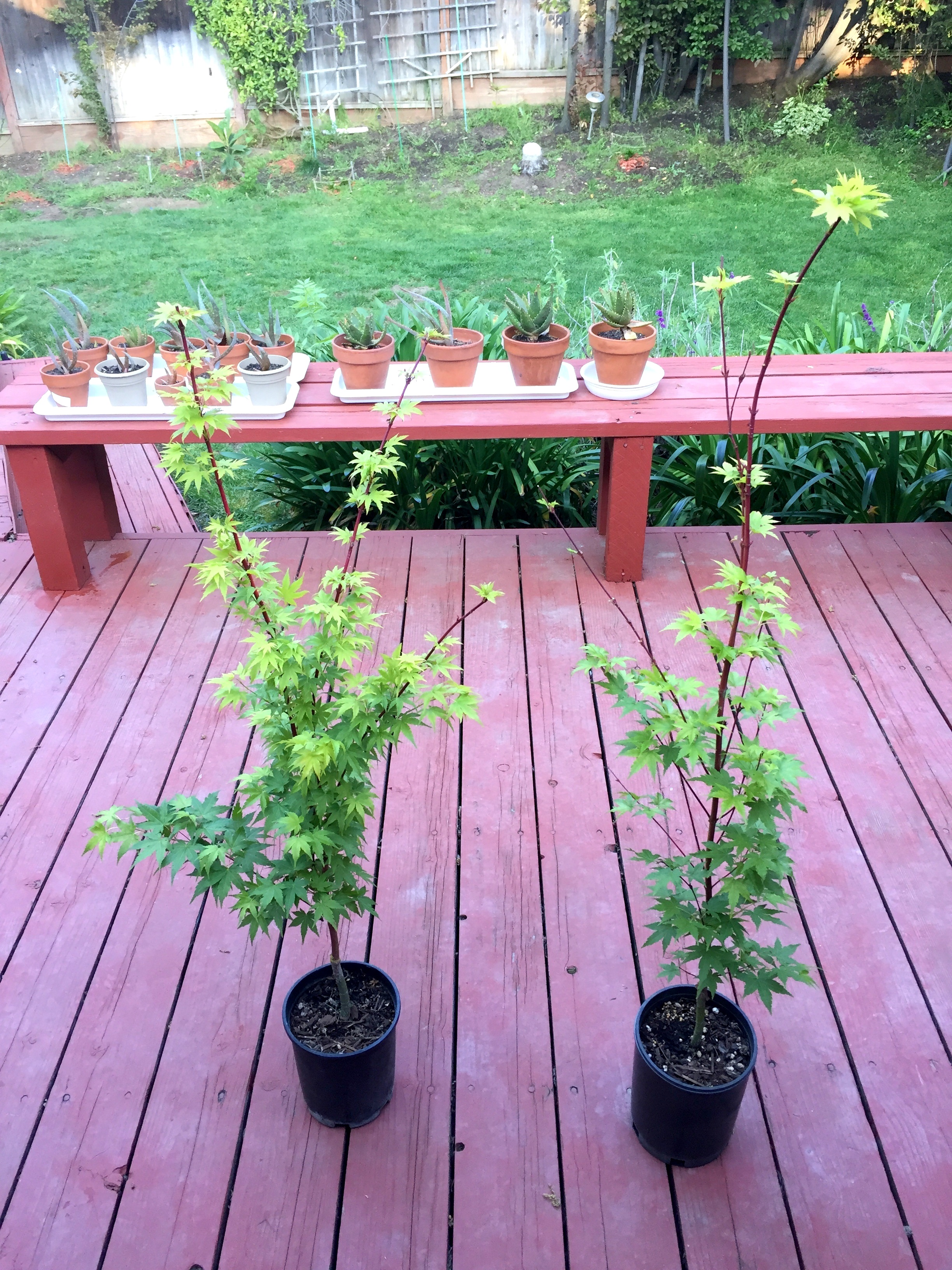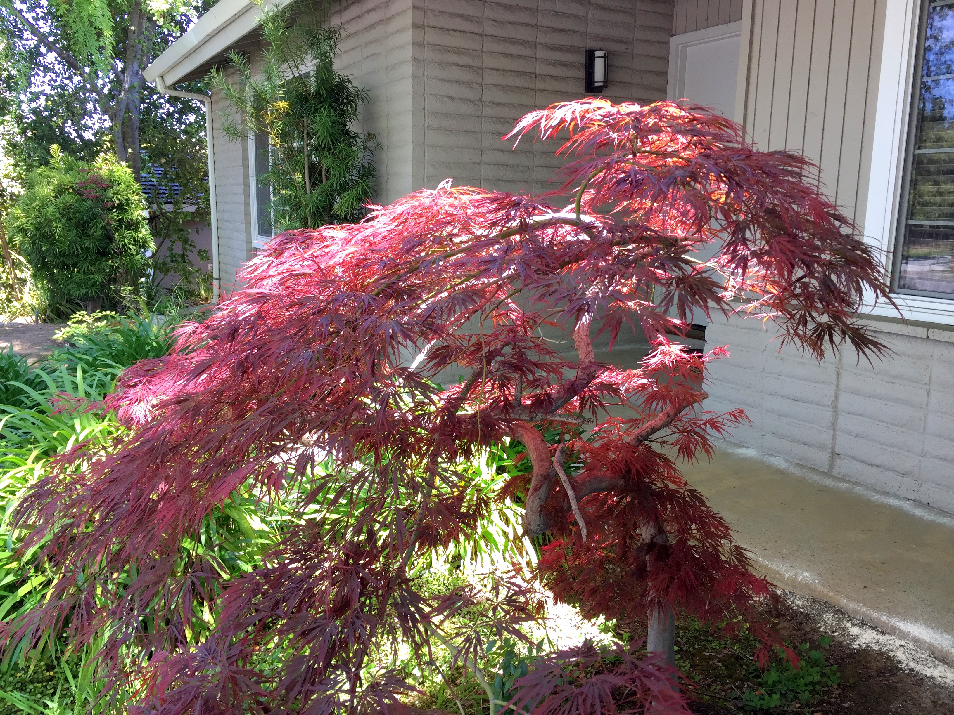 在直立形的日本楓中,最受歡迎的一個品種是血佳(Bloodgood),樹形可以長到15呎,樹枝水平開展,葉片較寬, 呈掌形,葉子在夏天是深紫色,秋天轉為大紅,這種品種極為耐寒耐旱。