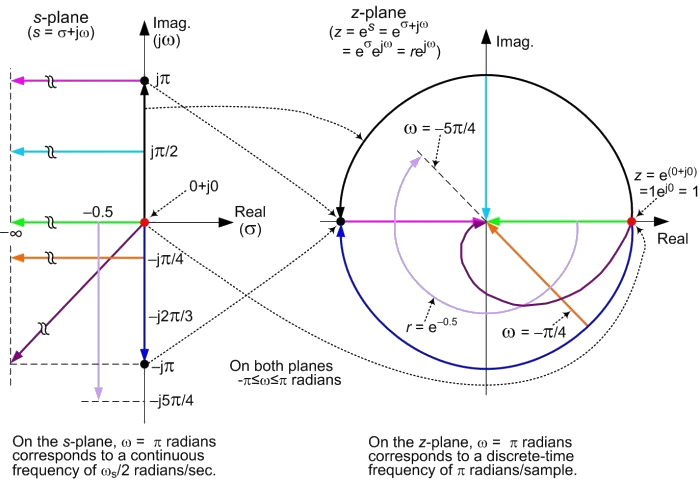 The unit vector at rotation ω=π (180°) corresponds to Fs/2 or the Nyquist frequency.