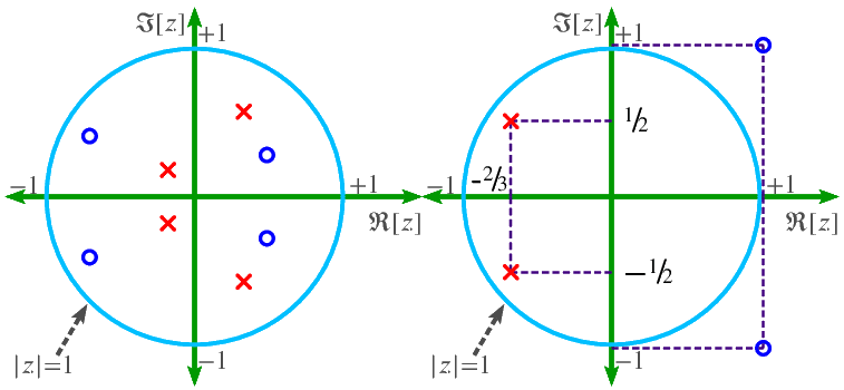 \(\mathrm{\mathit{x\left ( n-n_{\mathrm{0}} \right )\overset{ZT}{\leftrightarrow}z^{-n_{\mathrm{0}}}X\left ( z \right )}}\)