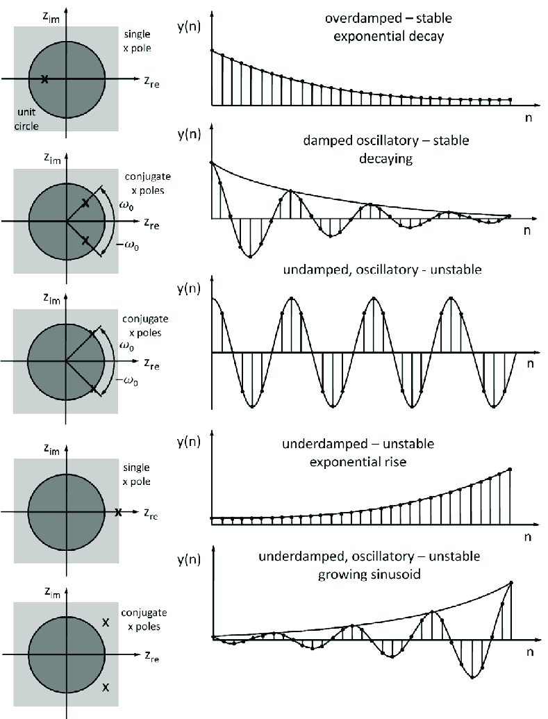 \(a^{n}\sin (\omega_0 n)u[n]\) | \(\Large \frac{az^{-1} sin(\omega_0)}{1-2az^{-1}cos(\omega_0) + a^{2}z^{-2}}\) | \(\lvert z \rvert > \lvert a \rvert \) |