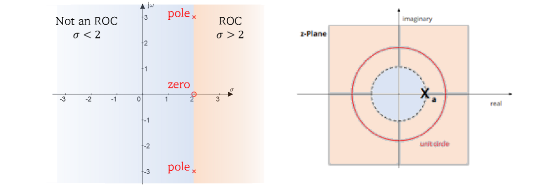 \(a^{n}u[n]\) | \(\Large \frac{1}{1-az^{-1}}\) | \(\lvert z \rvert > \lvert a \rvert\) |
