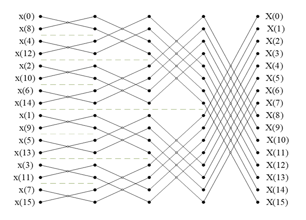 \(\Rightarrow F_N\underline X=\begin{bmatrix}I&D_\frac N2\\I&-D_\frac N2\end{bmatrix}\begin{bmatrix}F_\frac N2{\underline X}_{even}\\F_\frac N2{\underline X}_{odd}\end{bmatrix}\)