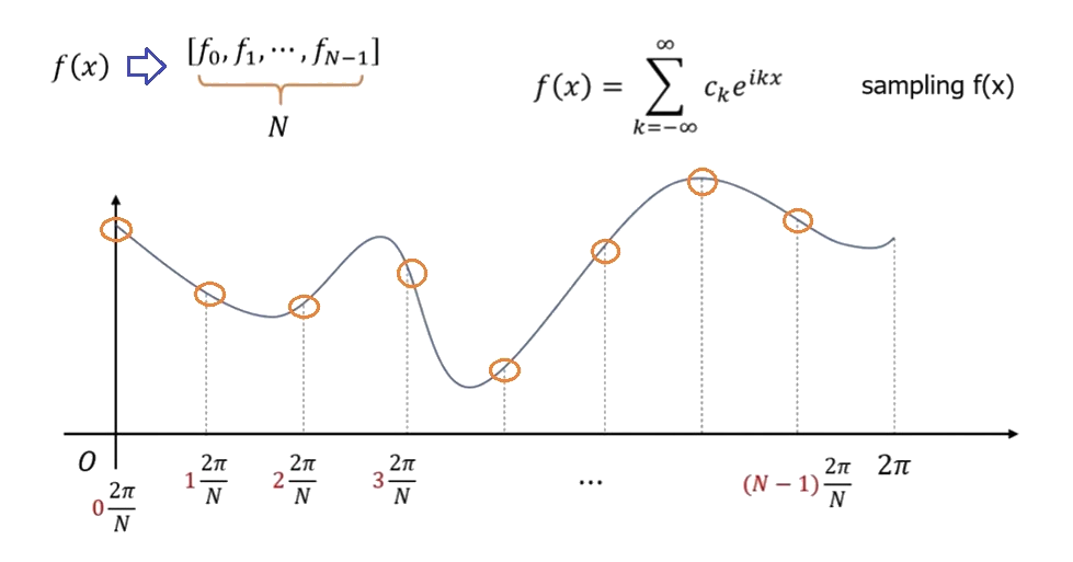 \(period:\;2\pi,\;f(x)=\sum_{n=-\infty}^\infty c_ne^{inx}\)