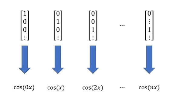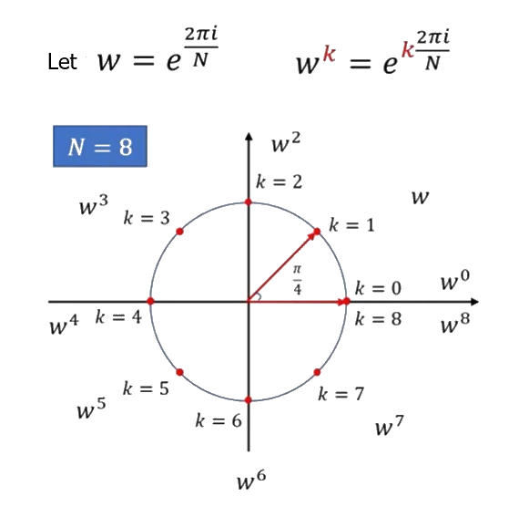 [Ex] \(\begin{bmatrix}4\\0\\0\\0\end{bmatrix},\;\omega=e^\frac{2\pi i}4=i,\;f(x)=\left\{\begin{array}{l}f(0\cdot\frac{2\pi}4)=4\\f(1\cdot\frac{2\pi}4)=0\\f(2\cdot\frac{2\pi}4)=0\\f(3\cdot\frac{2\pi}4)=0\end{array}\right.\)