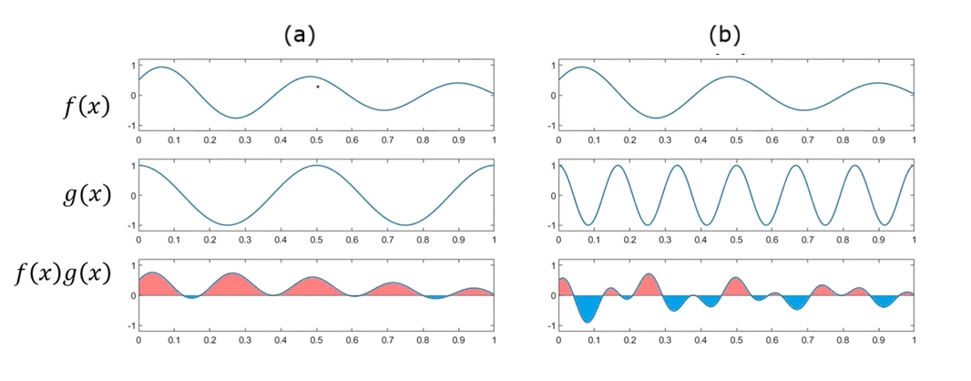\(\int_{-\pi}^\pi f(x)g(x)\operatorname dx\): inner product of two functions