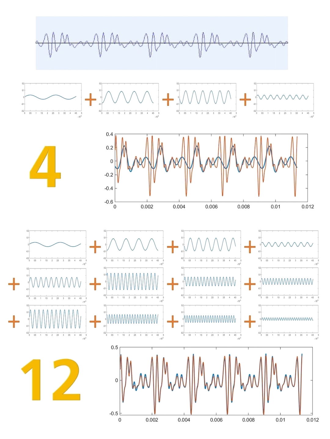 \(f(1\cdot\frac{2\pi}4)\Rightarrow\left\{\begin{array}{l}=(\cdots+c_{-4}+c_0+c_4+\cdots)\omega^0\\+(\cdots+c_{-3}+c_1+c_5+\cdots)\omega^1\\+(\cdots+c_{-2}+c_2+c_6+\cdots)\omega^2\\+(\cdots+c_{-1}+c_3+c_7+\cdots)\omega^3\end{array}\right.\)