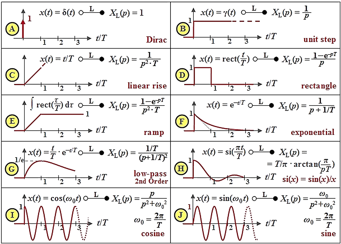 拉普拉斯轉換\(\mathcal F\{f(t)\}=\int_{-\infty}^\infty f(t)e^{-j\omega t}\operatorname dt=F(\omega)\)