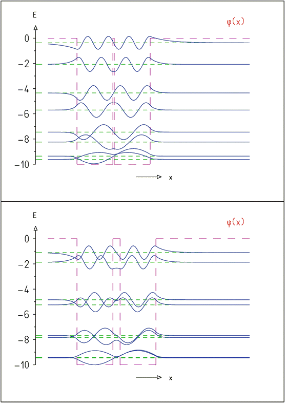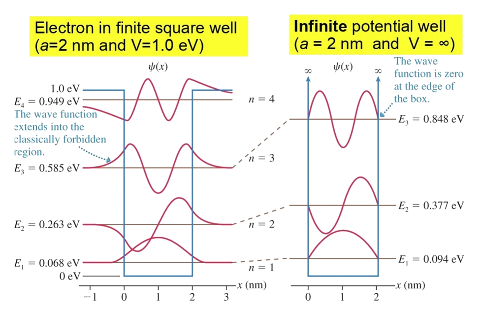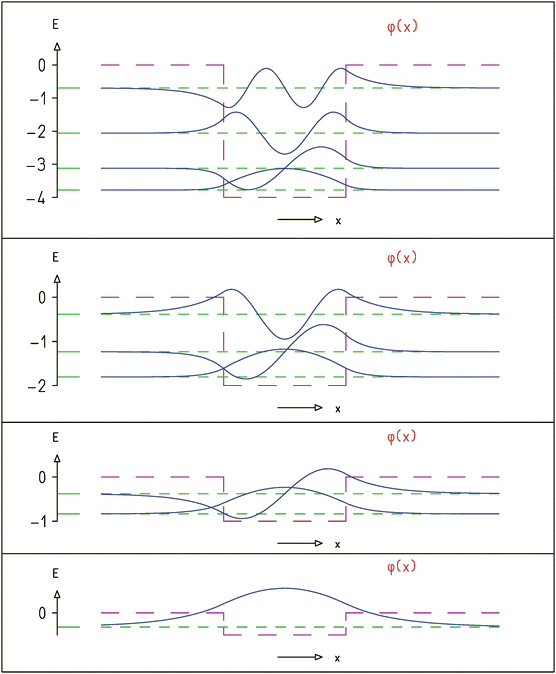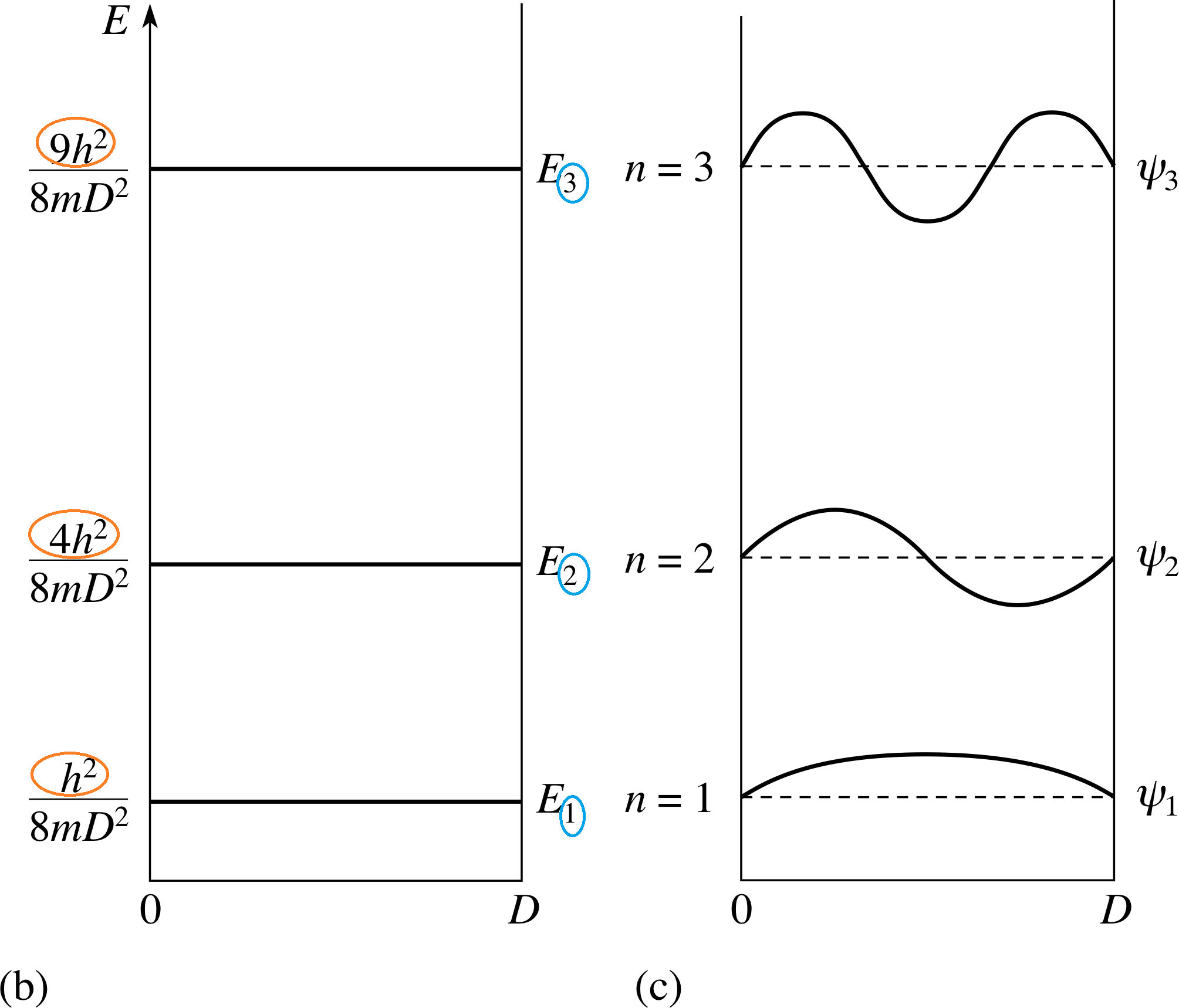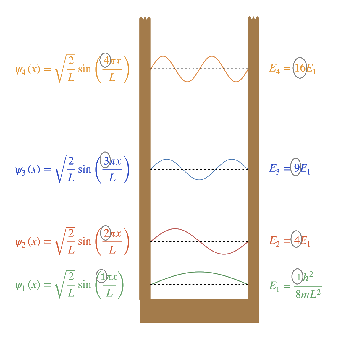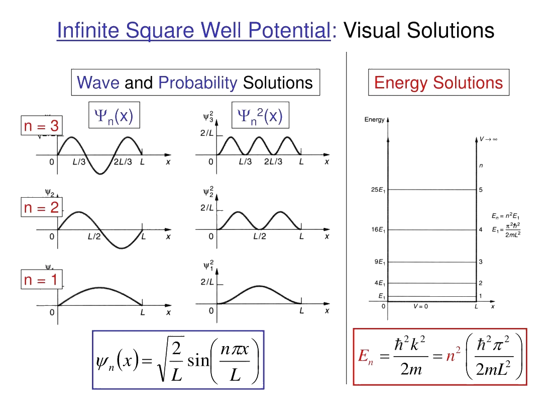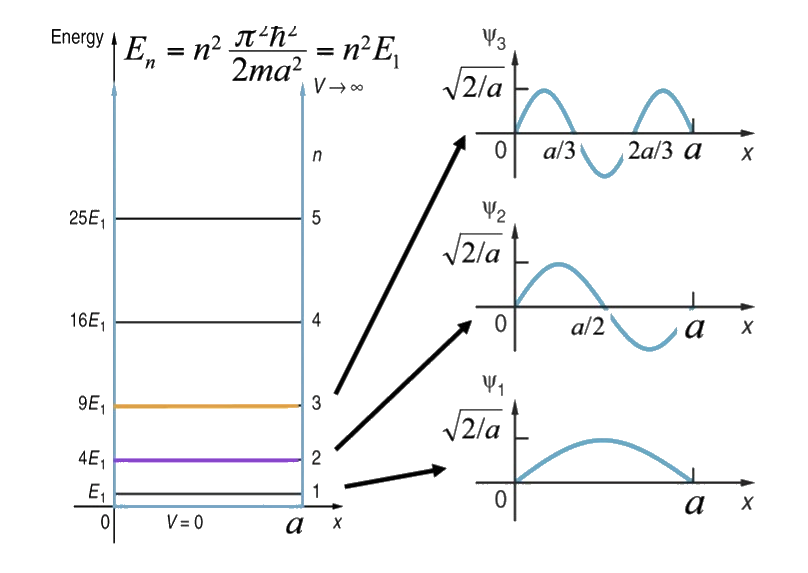 \(\hat H\psi_n=E_n\psi_n,\;\left\{\begin{array}{l}\psi_n(x)=\sqrt{\frac2a}\sin(\frac{n\pi x}a)\\E_n=\frac{n^2\pi^2\hslash^2}{2ma^2}\end{array}\right.,\;n=1,2,3,\cdots\)