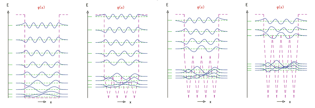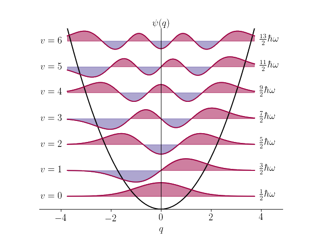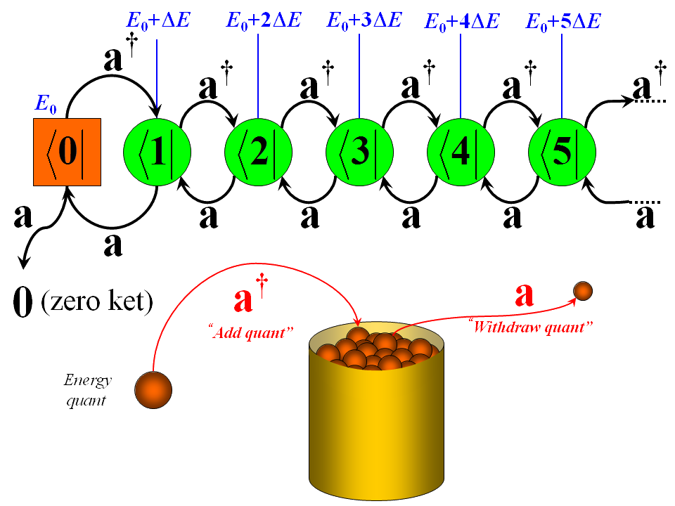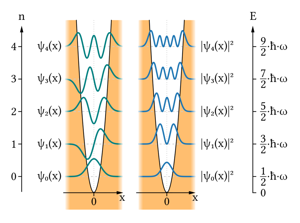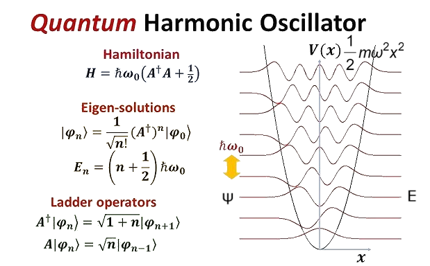 \(\Rightarrow\left\{\begin{array}{l}\psi_n(x)=\frac1{\sqrt{n!}}{(a_+)}^n\psi_0(x)\;\Rightarrow\vert n\rangle=\frac1{\sqrt{n!}}{(a_+)}^n\vert0\rangle\\E_n=(n+\frac12)\hslash\omega\end{array}\right.\)