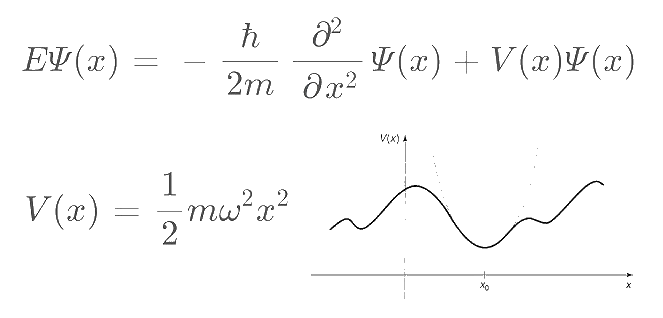 \(\underbrace{\frac1{2m}(p^2+m^2\omega^2x^2)}_\hat H\psi=E\psi\)