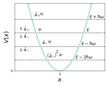 number operator \(\left\{\begin{array}{l}a_+a_-\psi_n=n\psi_n\\a_-a_+\psi_n=(n+1)\psi_n\end{array}\right.\)