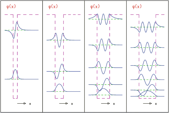 \(\left\{\begin{array}{l}\psi_n=A_n{(a_+)}^n\psi_0\;(x)\\E_n=(n+\frac12)\hslash\omega\end{array}\right.\)