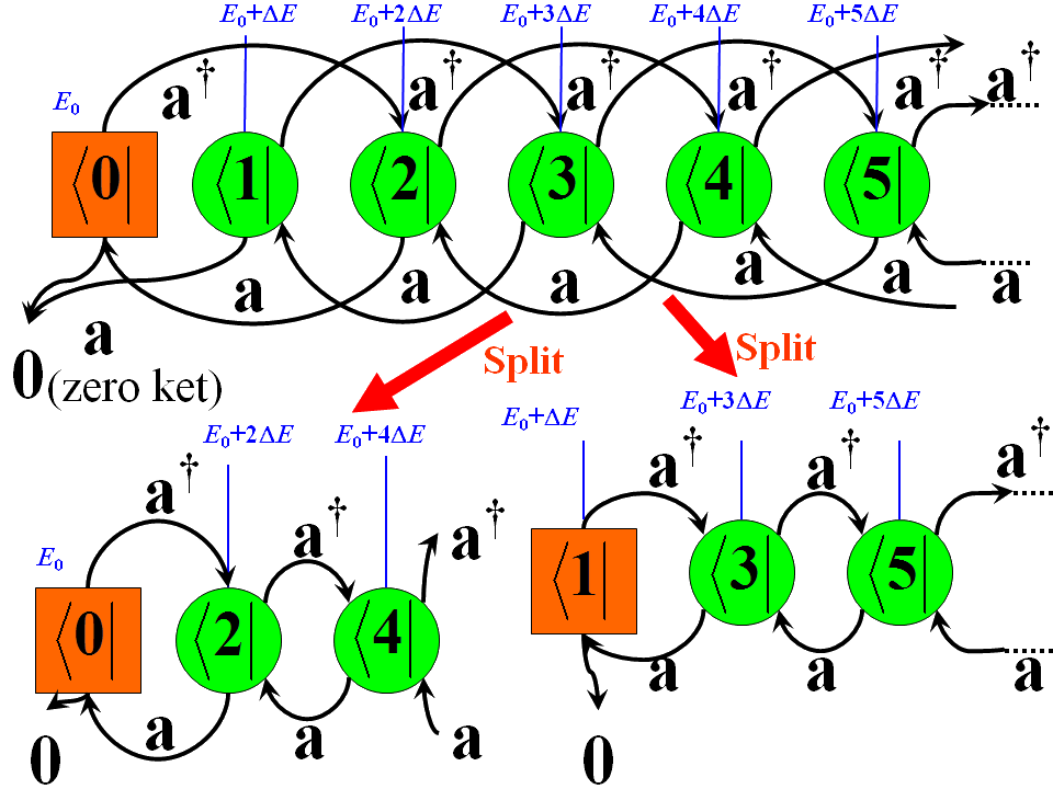 \(\left\{\begin{array}{l}\hslash\omega(a_-a_+-\frac12)\psi=E\psi\\\hslash\omega(a_+a_-+\frac12)\psi=E\psi\end{array}\right.\)