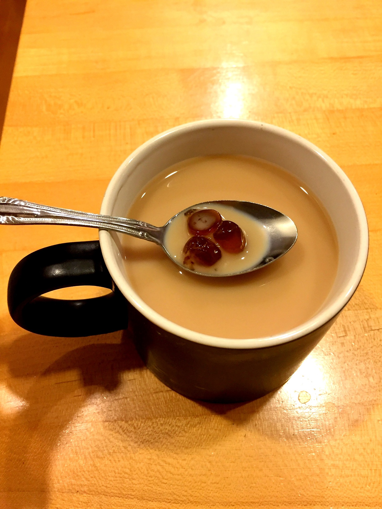 珍珠奶茶的粉圓特別有嚼勁,粉圓通常是用番薯粉和樹薯粉再加水及糖製做而成。 如今珍奶店在灣區迅速進駐,百花齊放,與日俱增,有夢咖啡,天仁茗茶,一芳,歇腳亭,日出茶太,貢茶等。